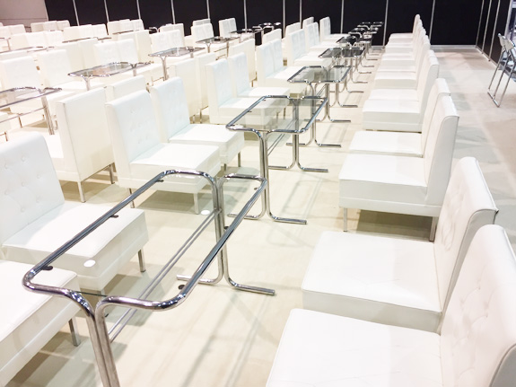 展示会におけるテーブルや椅子など、各種備品の設営を請け負います。総合展から個展、学会やセミナーなど、幅広いシーンに対応しております。